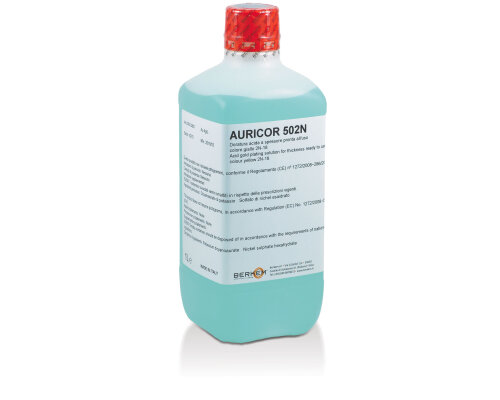 AURICOR 502N is a yellow 2N-18kt acid gold thickness solution for bath plating ready to use which can easly deposits gold thickness up to 5 microns