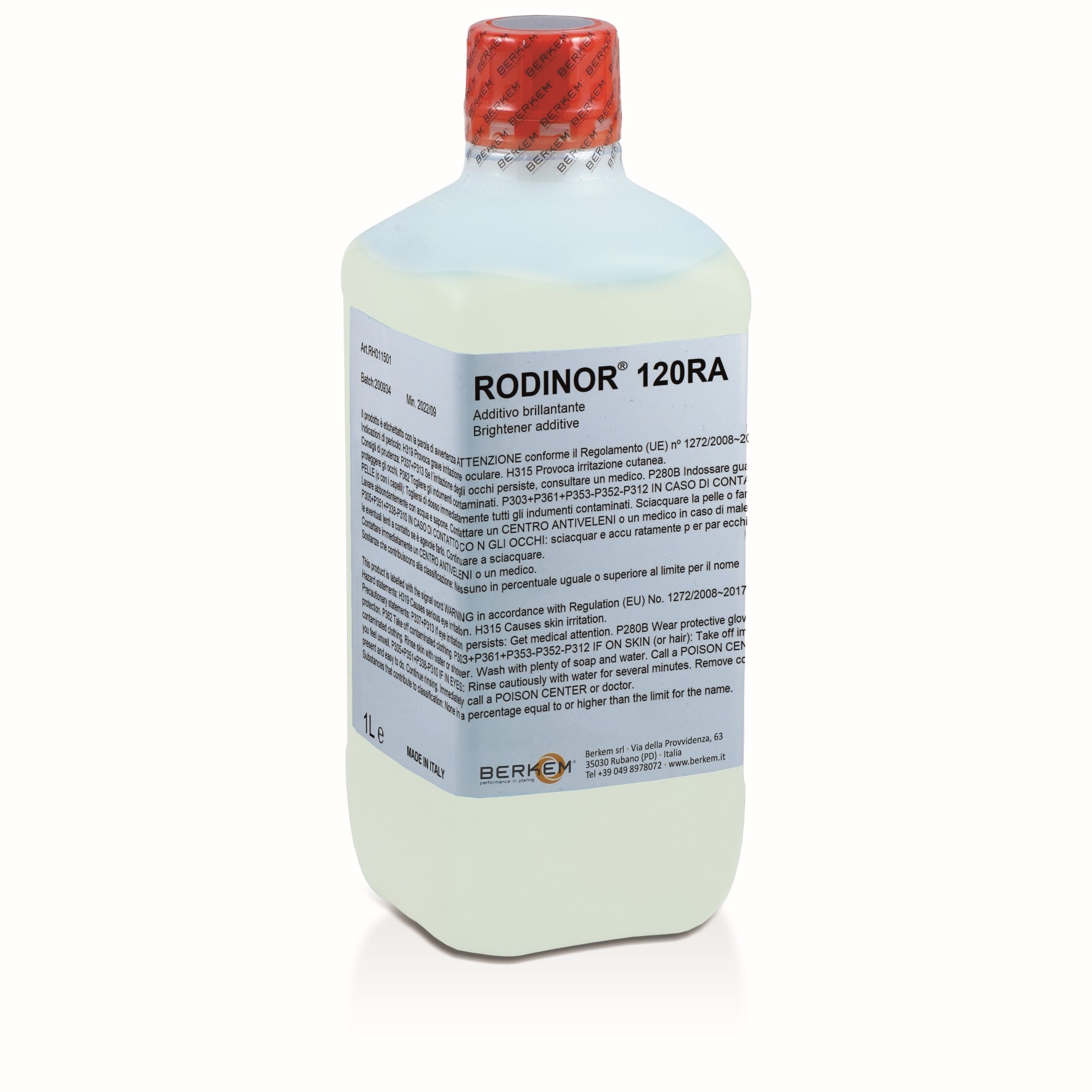 Brightener additive for white rhodium solution for bath plating RODINOR 102 | 104 | 120Use BathApplications Applied engineering, Medical and Biomaterials, Fashion, Goldsmith and SilversmithPackaging 1 L, 100 ml